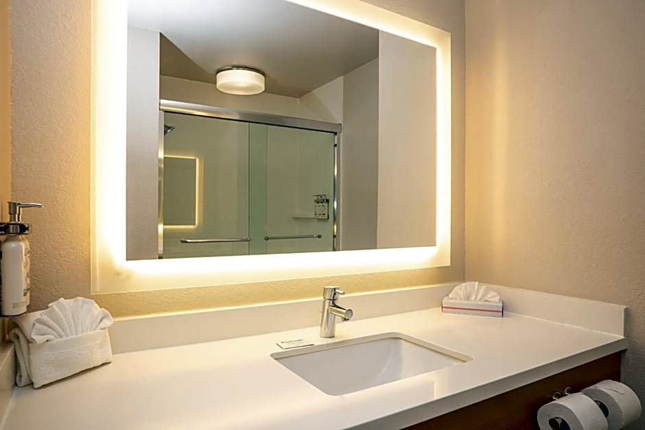 This spacious suite features 2 bathrooms and a separate living area.